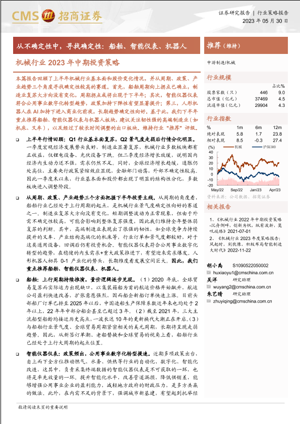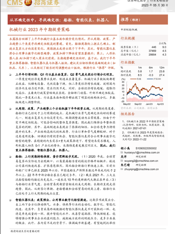 【海通证券】【20230530】机械行业2023年中期投资策略:从不确定性中,寻找确定性,船舶、智能仪表、机器人-28页