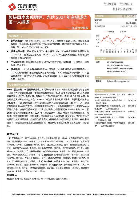 【东方证券】【20230528】机械行业周报:板块周度表现稳健,光伏2027年有望成为第一大能源-25页
