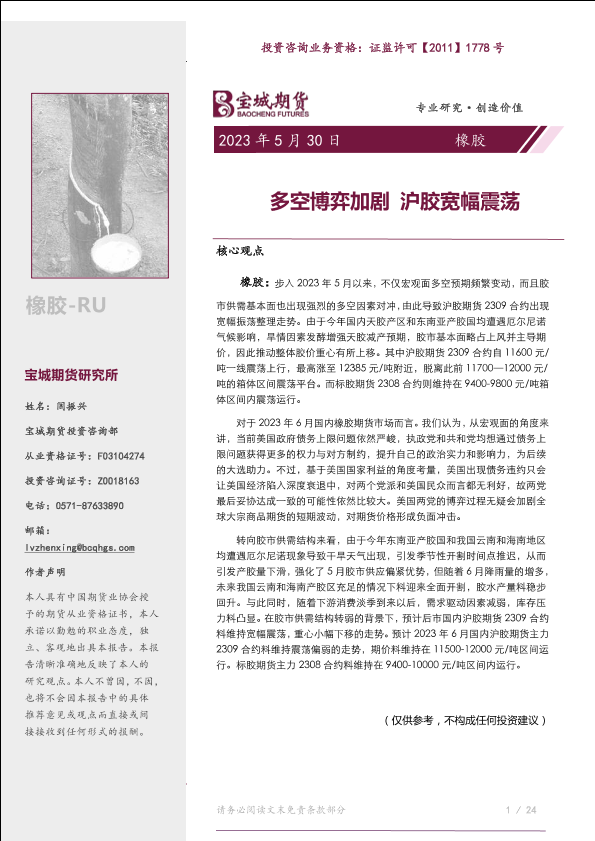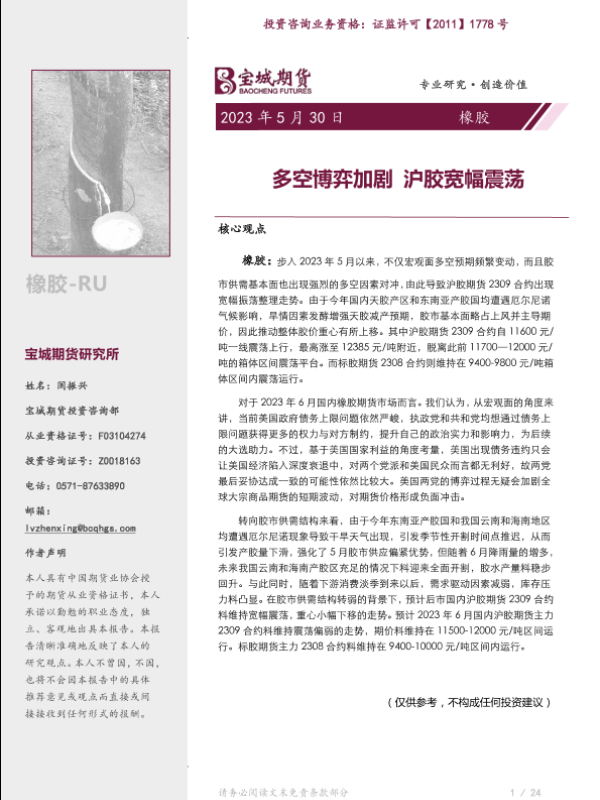 【宝城期货】【20230530】橡胶月报:多空博弈加剧,沪胶宽幅震荡-26页