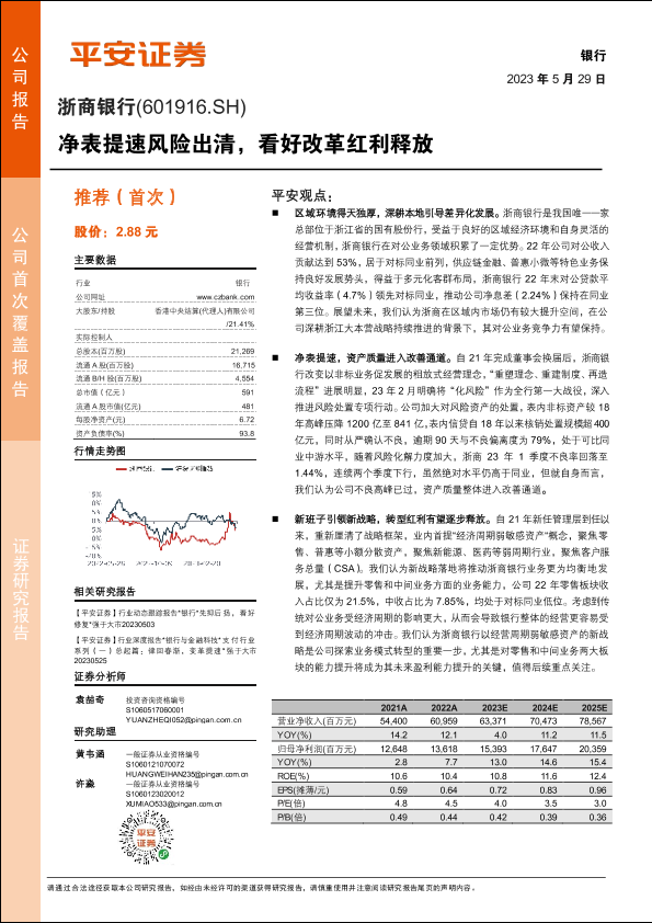 【平安证券】【20230529】浙商银行(601916)净表提速风险出清,看好改革红利释放-26页