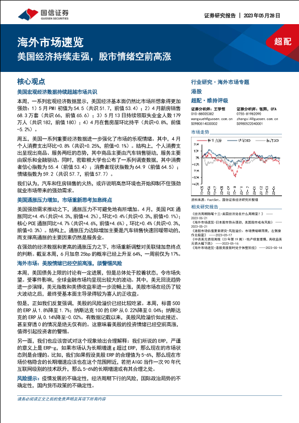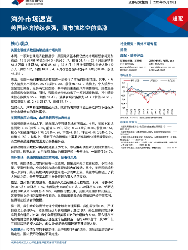 【国信证券】【20230528】海外市场速览:美国经济持续走强,股市情绪空前高涨-17页
