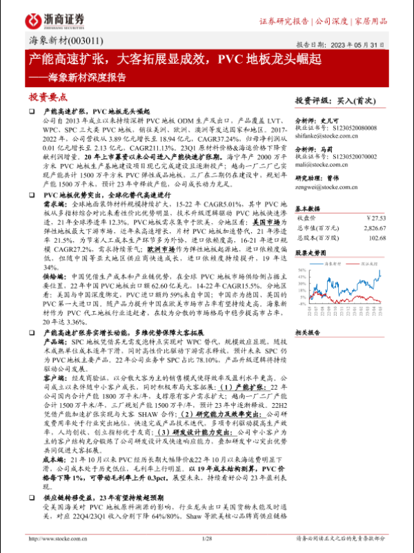 【浙商证券】【20230531】海象新材(003011)海象新材深度报告:产能高速扩张,大客拓展显成效,PVC地板龙头崛起-28页