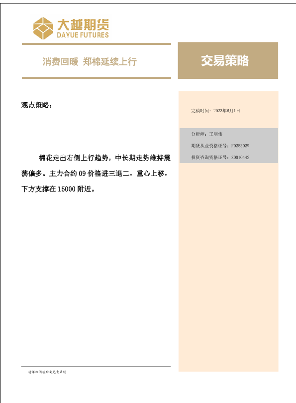 【大越期货】【20230601】消费回暖,郑棉延续上行-22页