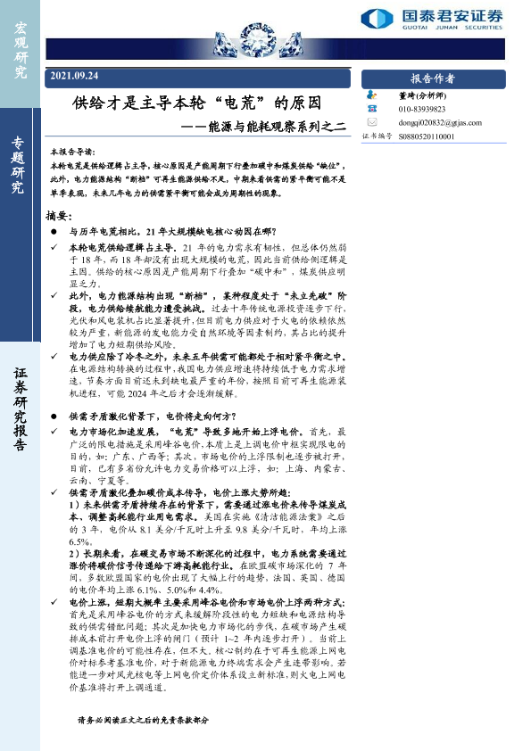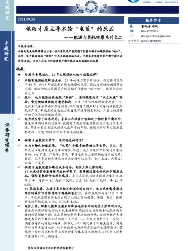 【国泰君安证券】【20210924】供给才是主导本轮“电荒”的原因-16页