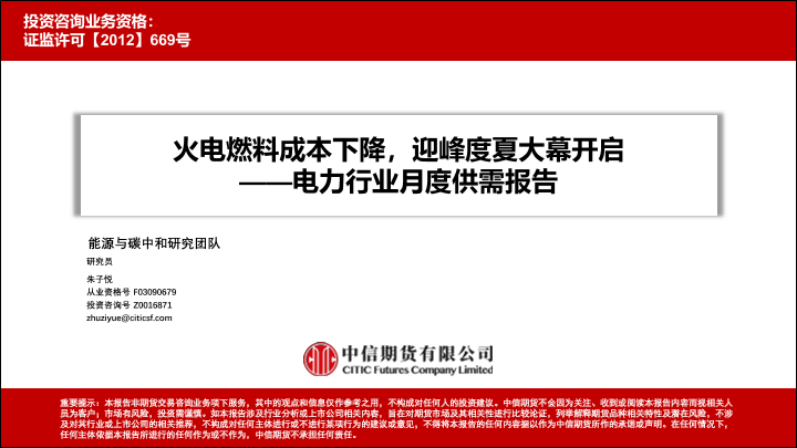【中信期货】【20230531】电力行业月度供需报告:火电燃料成本下降,迎峰度夏大幕开启-33页