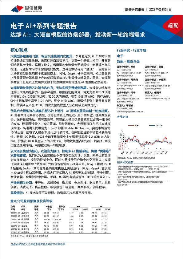 【国信证券】【20230531】电子AI+系列专题报告:边缘AI:大语言模型的终端部署,推动新一轮终端需求-25页