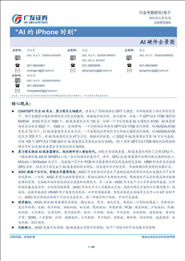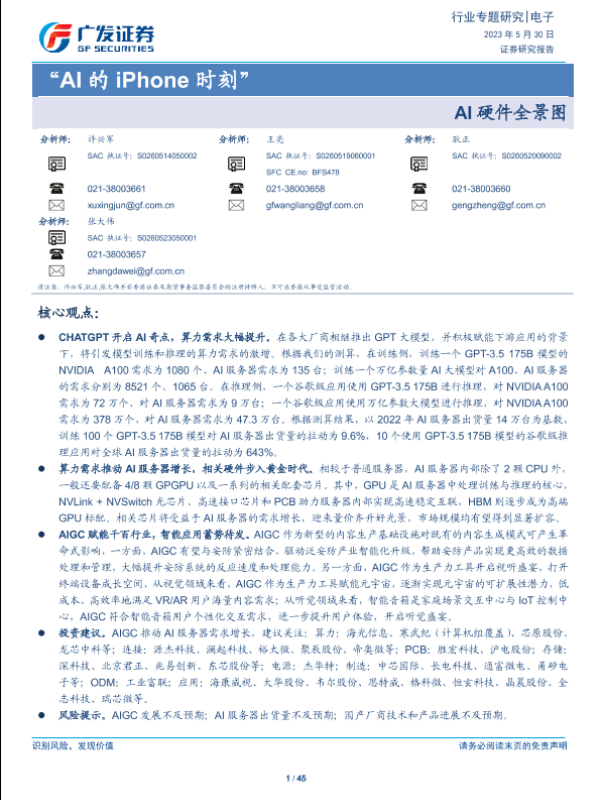【广发证券】【20230530】电子行业专题研究:AI硬件全景图-“AI的iPhone时刻”-45页