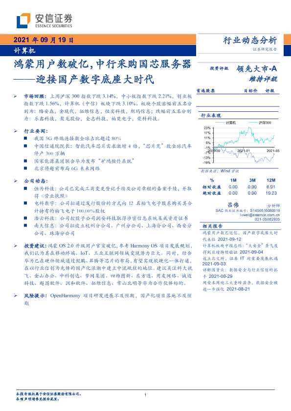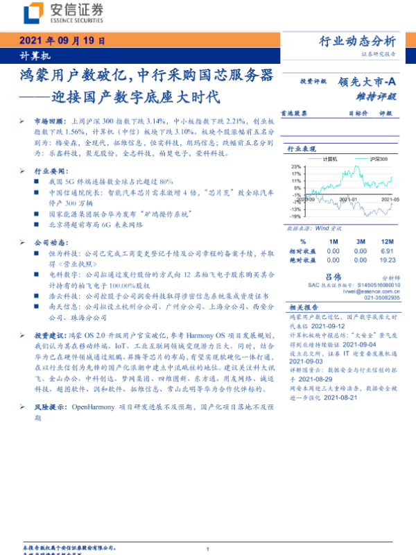 【安信证券】【20210919】计算机行业迎接国产数字底座大时代:鸿蒙用户数破亿,中行采购国芯服务器-21页