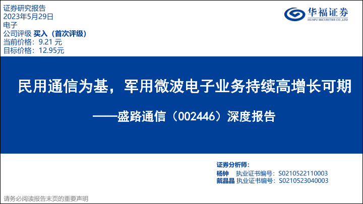 【华福证券】【20230531】盛路通信-深度报告_民用通信为基_军用微波电子业务持续高增长可期-27页