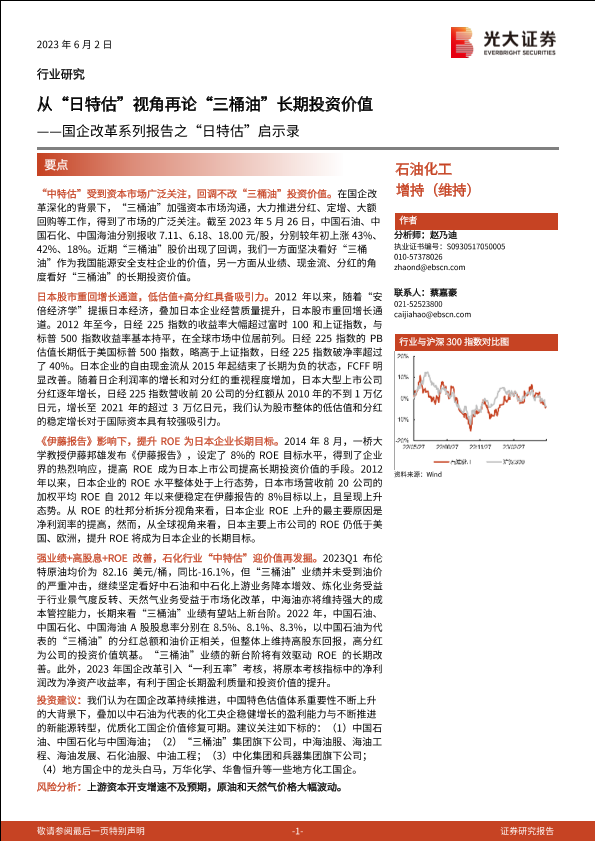 【光大证券】【20230602】石油化工行业国企改革系列报告之“日特估”启示录:从“日特估”视角再论“三桶油”长期投资价值-20页