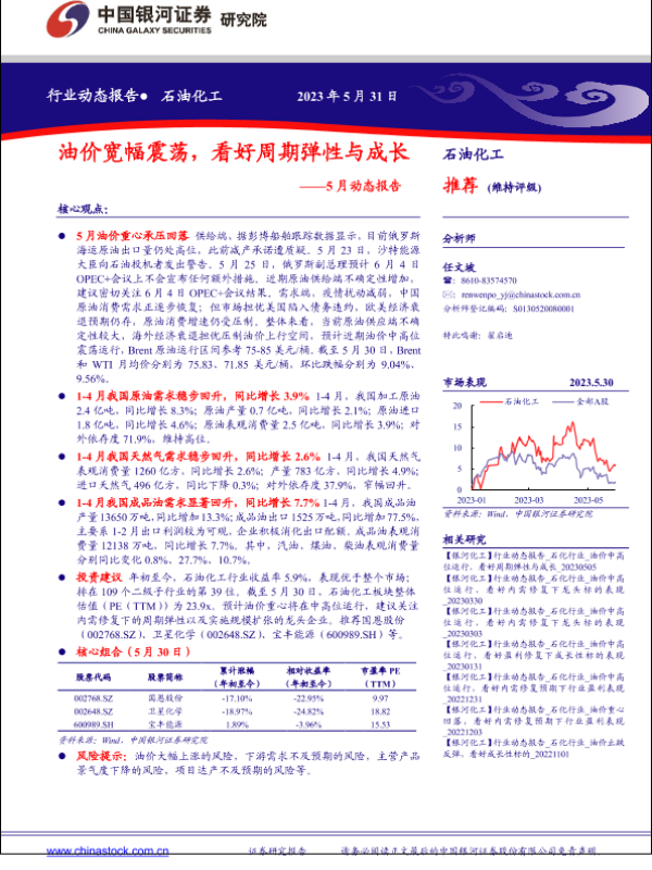 【银河证券】【20230531】石油化工5月动态报告:油价宽幅震荡,看好周期弹性与成长-24页