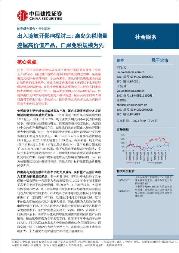 【中信建投证券】【20230529】社会服务行业出入境放开影响探讨三:离岛免税增量挖掘高价值产品,口岸免税规模为先-24页