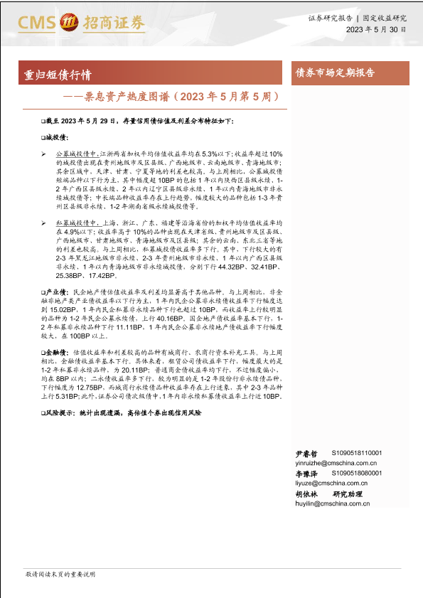 【海通证券】【20230530】票息资产热度图谱(2023年5月第5周):重归短债行情-18页