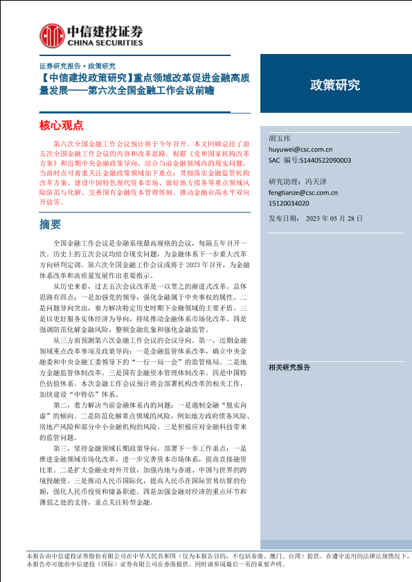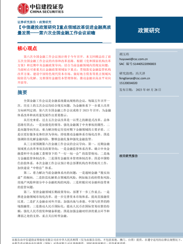 【中信建投证券】【20230528】第六次全国金融工作会议前瞻:重点领域改革促进金融高质量发展-25页