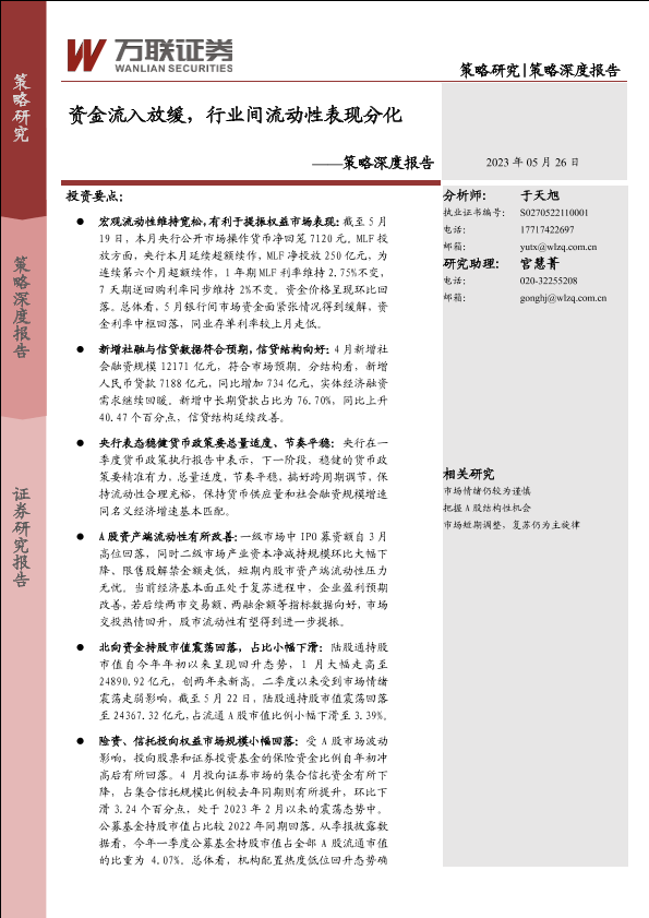 【万联证券】【20230526】资金流入放缓,行业间流动性表现分化-17页