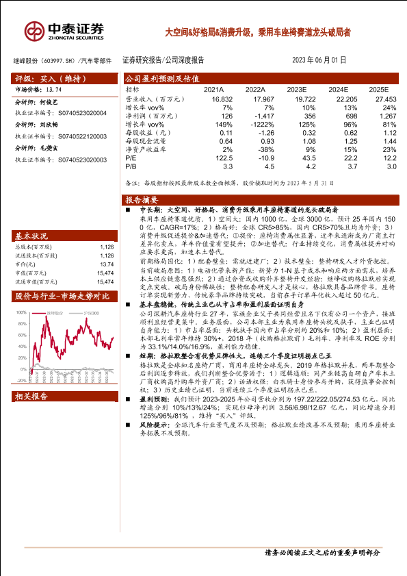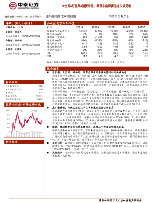 【中泰证券】【20230601】继峰股份(603997)大空间&好格局&消费升级,乘用车座椅赛道龙头破局者-22页