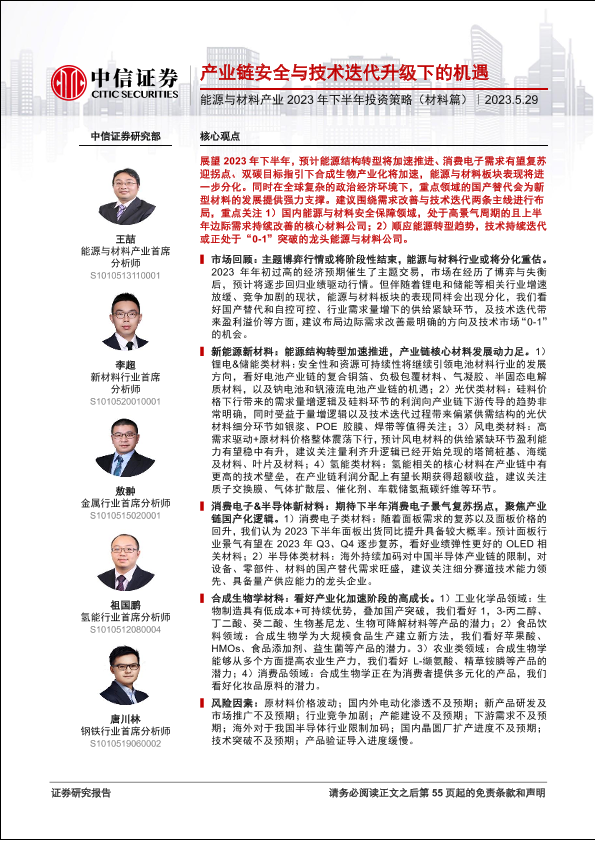 【中信证券】【20230529】能源与材料产业2023年下半年投资策略(材料篇):产业链安全与技术迭代升级下的机遇-55页