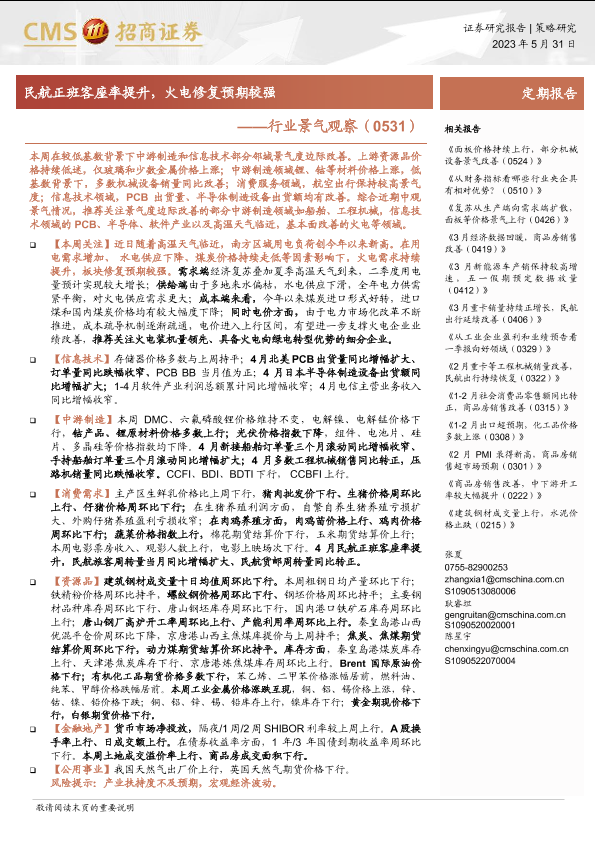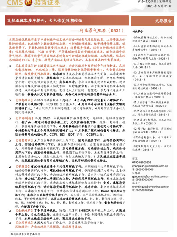 【海通证券】【20230531】行业景气观察:民航正班客座率提升,火电修复预期较强-27页