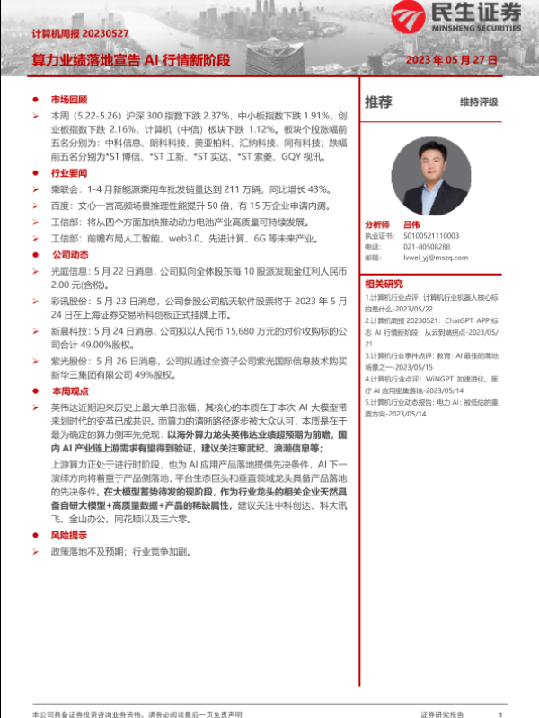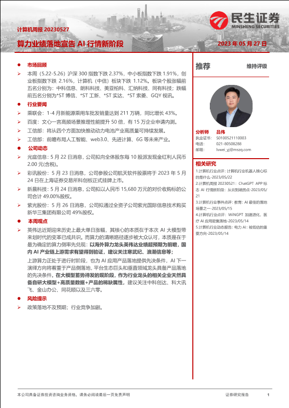【民生证券】【20230527】计算机周报:算力业绩落地宣告 AI行情新阶段-25页