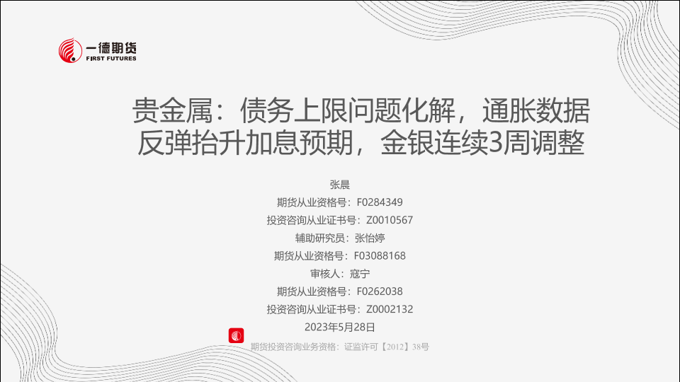 【一德期货】【20230528】贵金属:债务上限问题化解,通胀数据反弹抬升加息预期,金银连续3周调整-31页
