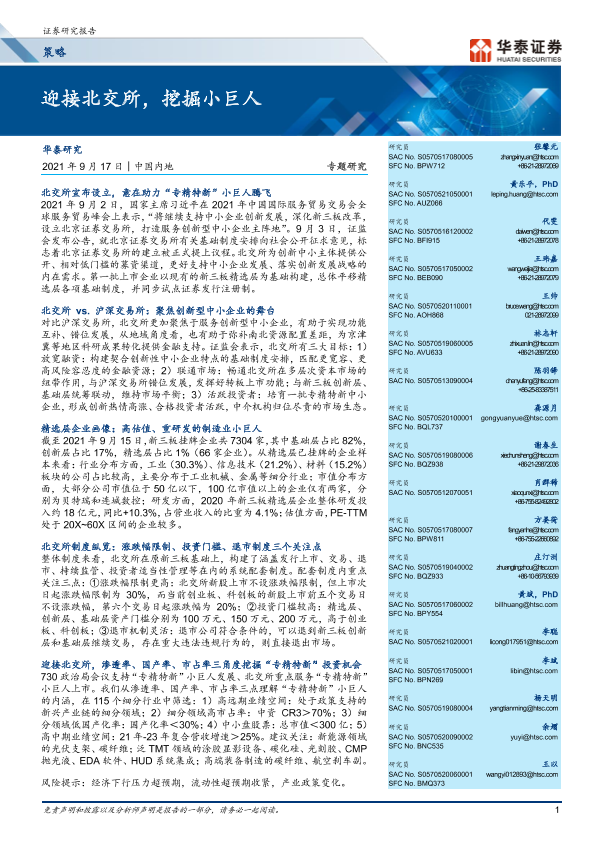 【华泰证券】【20210917】迎接北交所,挖掘小巨人-90页