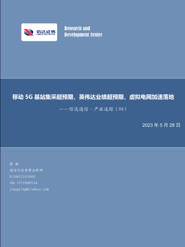 【信达证券】【20230528】移动5G基站集采超预期,英伟达业绩超预期,虚拟电网加速落地-28页