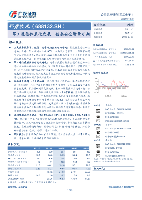 【广发证券】【20230530】邦彦技术(688132)军工通信体系化发展,信息安全增量可期-36页