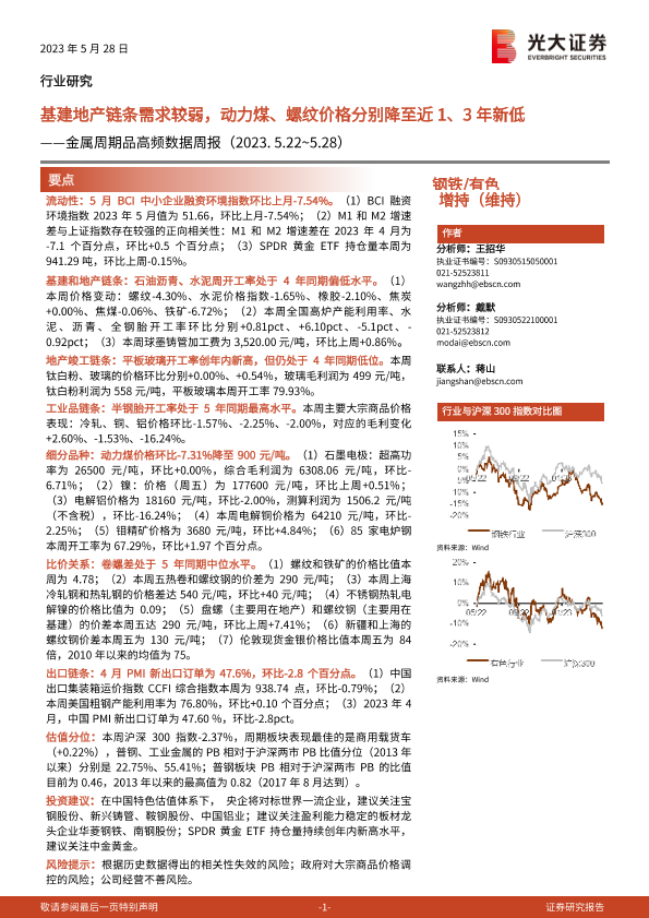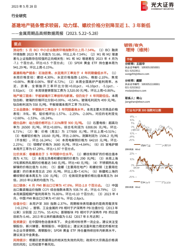 【光大证券】【20230528】金属周期品高频数据周报:基建地产链条需求较弱,动力煤、螺纹价格分别降至近1、3年新低-26页