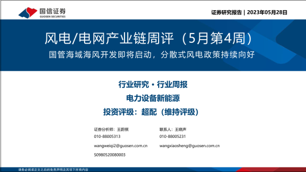 【国信证券】【20230528】风电电网产业链周评(5月第4周):国管海域海风开发即将启动,分散式风电政策持续向好-24页