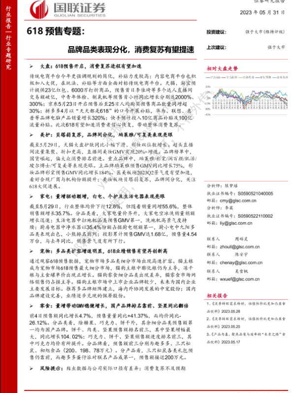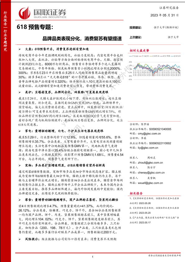 【国联证券】【20230531】食品饮料行业618预售专题:品牌品类表现分化,消费复苏有望提速-23页