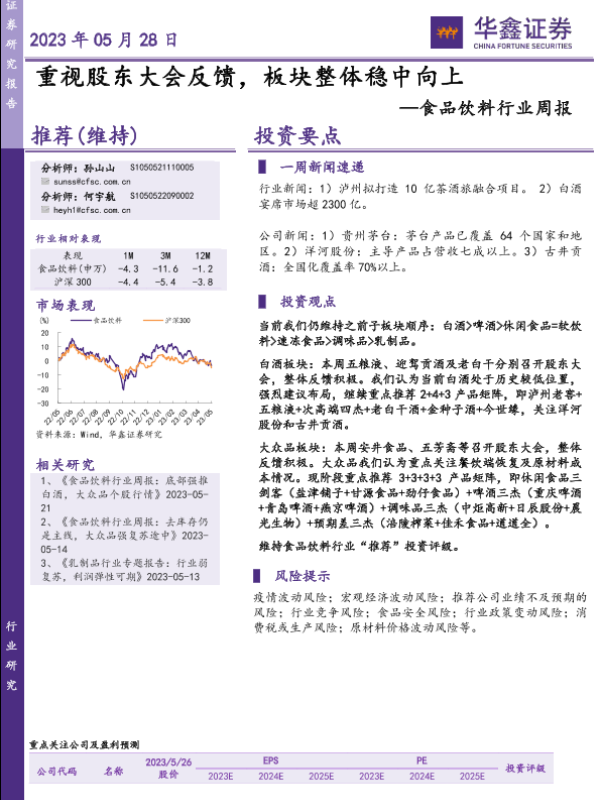 【华鑫证券】【20230528】食品饮料行业周报:重视股东大会反馈,板块整体稳中向上-25页