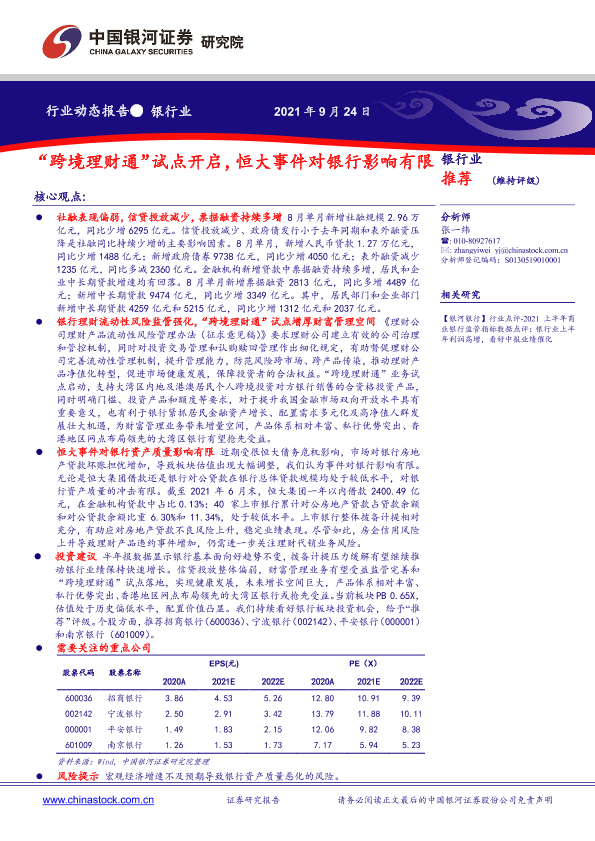 【银河证券】【20210924】银行业:“跨境理财通”试点开启,恒大事件对银行影响有限-23页
