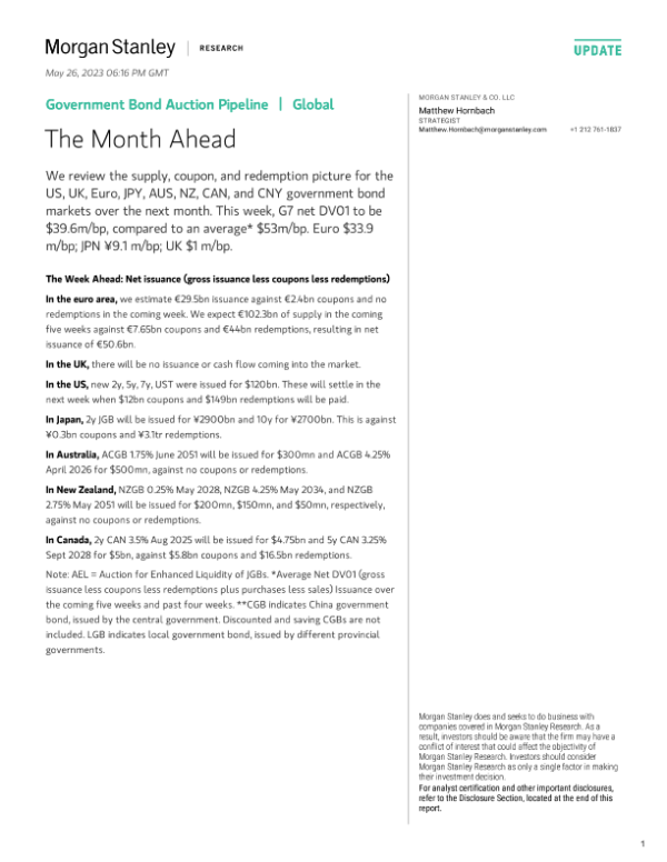 【Morgan Stanley】【20230526】Morgan Stanley Fixed-Government Bond Auction Pipeline The Month Ahead-19页