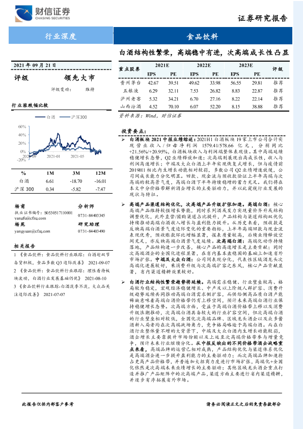 【财信证券】【20210921】食品饮料行业深度:白酒结构性繁荣,高端稳中有进,次高端成长性凸显-23页