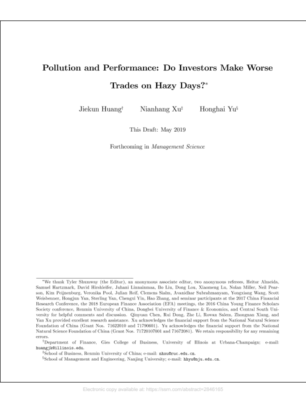 【Jiekun Huang】【201905】污染与业绩:投资者在阴天做更糟糕的交易吗?-48页