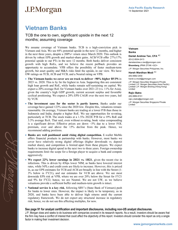 【J.P. Morgan】【20210914】越南银行:TCB将在未来12个月内大幅上涨;假设覆盖范围-97页