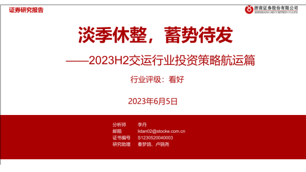 【浙商证券】【20230605】2023H2交运行业投资策略航运篇:淡季休整,蓄势待发-47页