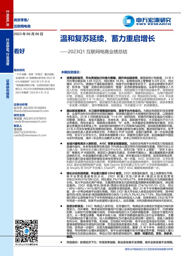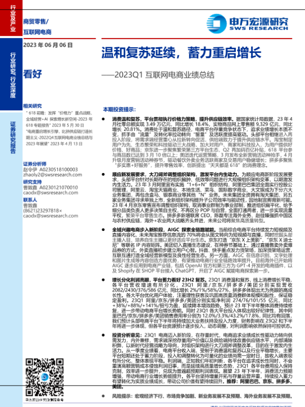 【申万宏源】【20230606】2023Q1互联网电商行业业绩总结:温和复苏延续,蓄力重启增长-29页