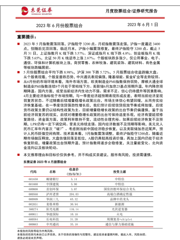 【东莞证券】【20230601】2023年6月份股票组合-15页