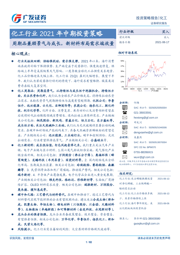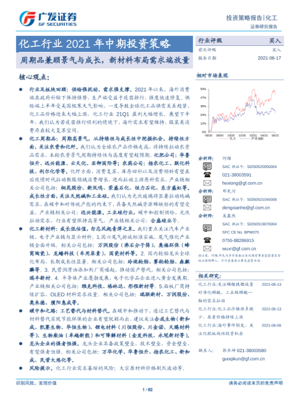 【广发证券】【20210617】化工行业2021年中期投资策略:周期品兼顾景气与成长,新材料布局需求端放量-62页