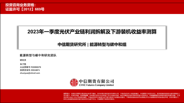 【中信期货】【20230605】2023年一季度光伏产业链利润拆解及下游装机收益率测算-16页