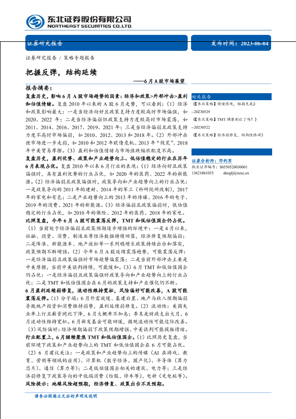 【东北证券】【20230604】6月A股市场展望:把握反弹,结构延续-33页