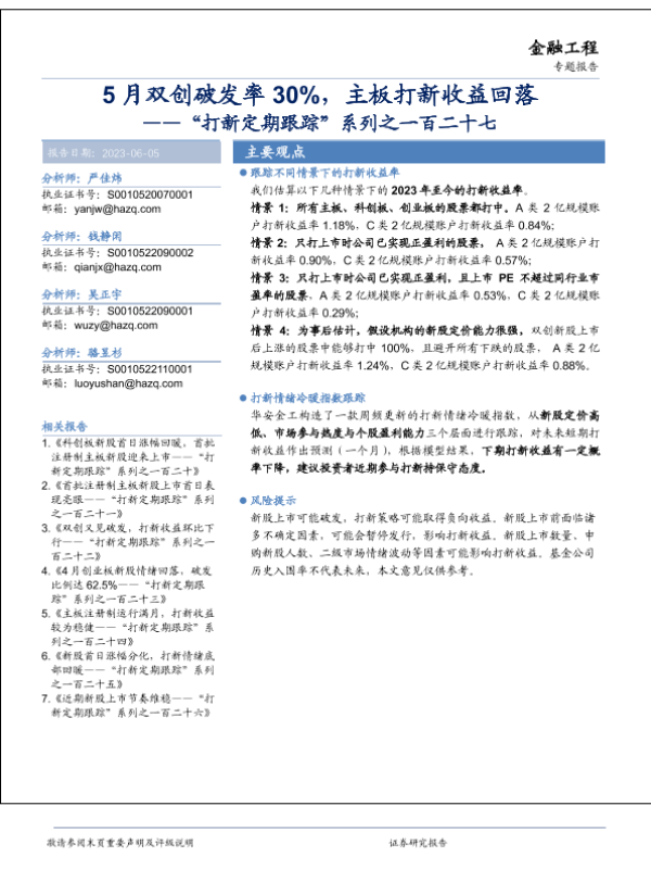 【华安证券】【20230605】“打新定期跟踪”系列之一百二十七:5月双创破发率30%,主板打新收益回落-21页