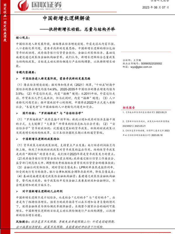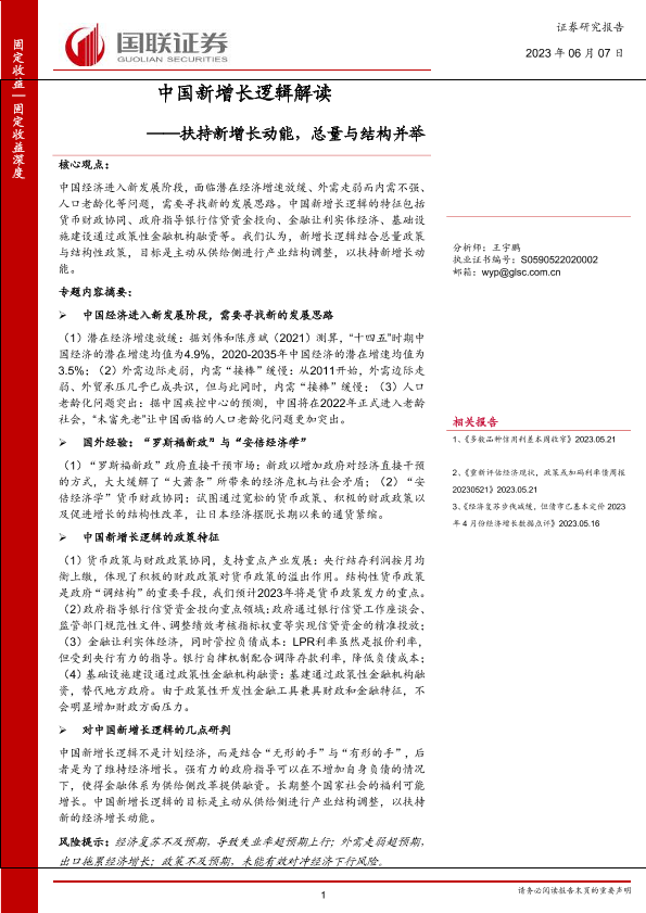 【国联证券】【20230607】中国新增长逻辑解读:扶持新增长动能,总量与结构并举-21页