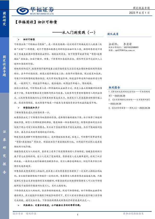 【华福证券】【20230601】从入门到实践(一):初识可转债-19页