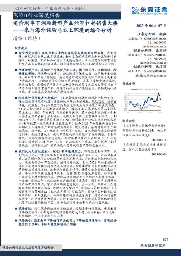 【东吴证券】【20230607】保险Ⅱ行业深度报告:来自海外经验与本土环境的综合分析,定价利率下调后新型产品能否扛起销售大旗-29页