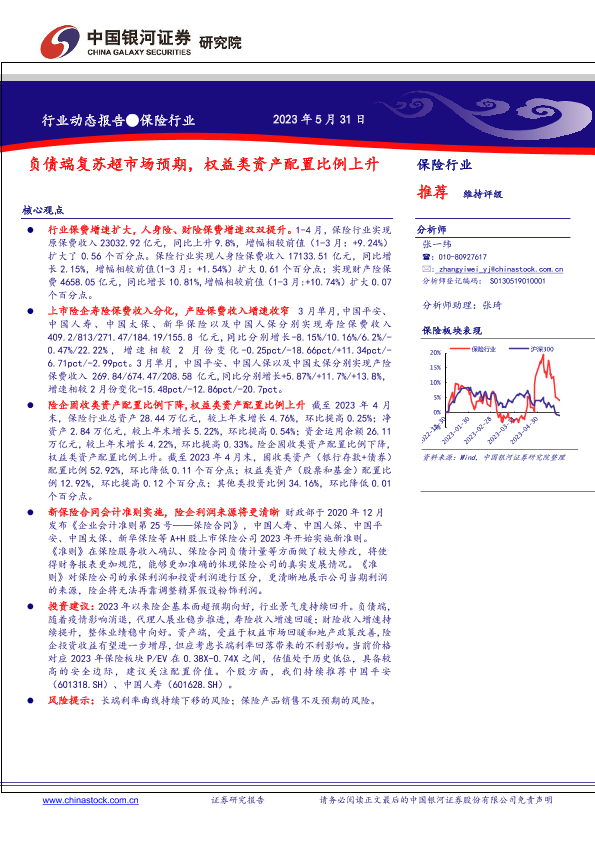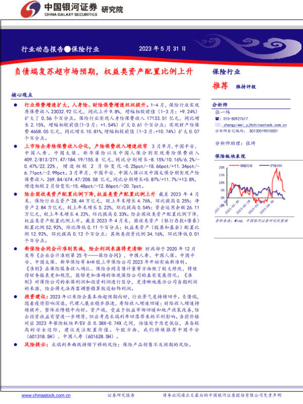 【银河证券】【20230531】保险行业:负债端复苏超市场预期,权益类资产配置比例上升-19页