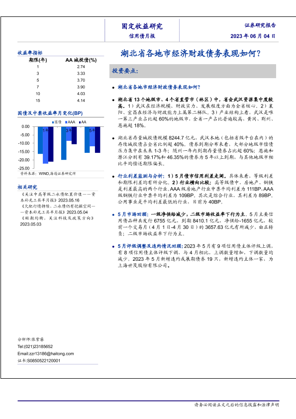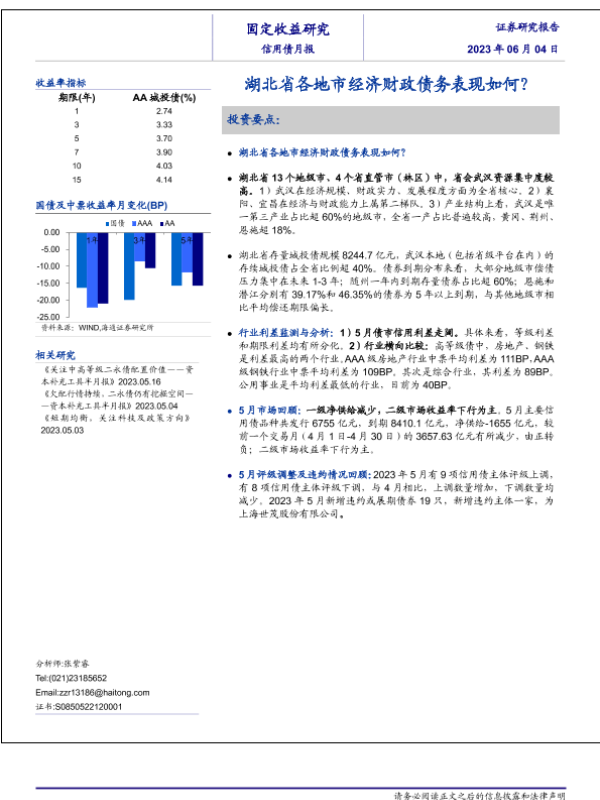 【海通证券】【20230604】信用债月报:湖北省各地市经济财政债务表现如何?-21页