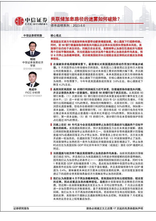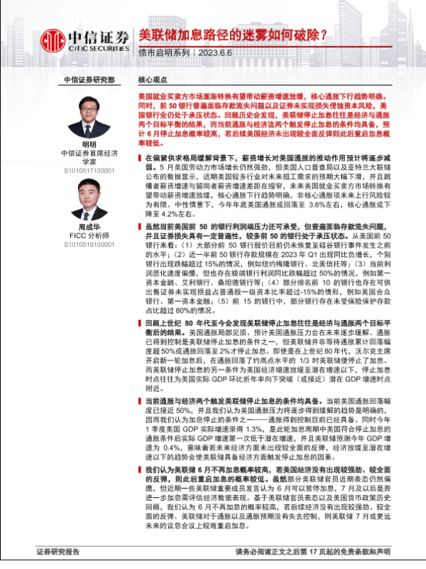 【中信证券】【20230606】债市启明系列:美联储加息路径的迷雾如何破除?-18页