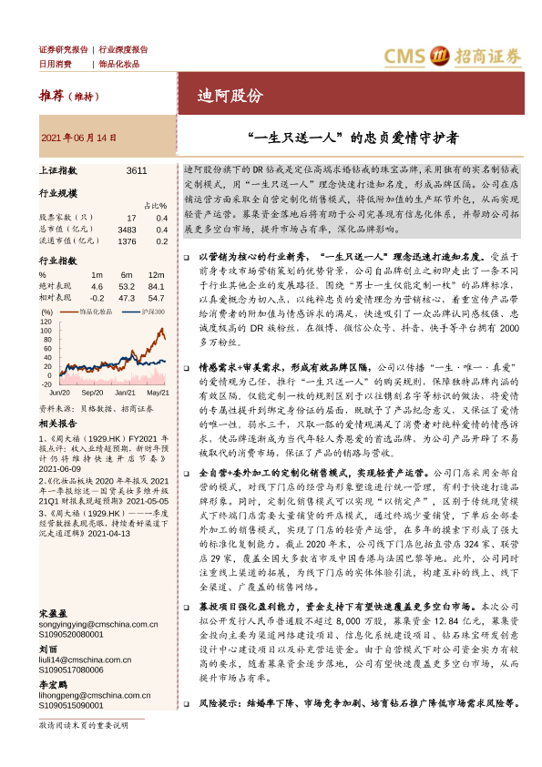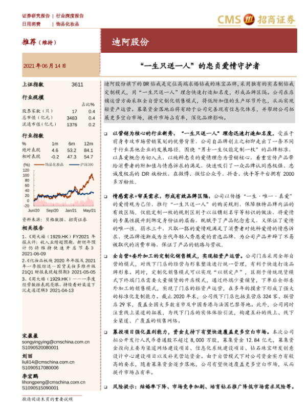 【海通证券】【20210614】化妆品行业:迪阿股份,“一生只送一人”的忠贞爱情守护者-24页